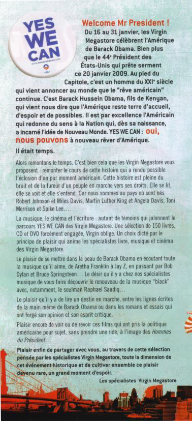 Echantillon d'Obamania mercantile, un dépliant trouvé aujourd'hui chez Virgin: