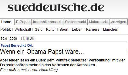 Il écrit dans un quotidien allemand: "Si j'étais pape" (9/2/2009)