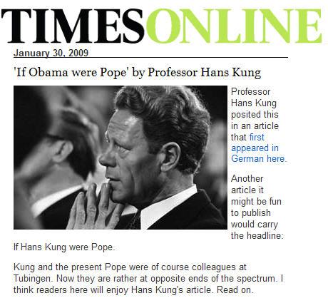 « Si Obama était pape, » par le professeur Hans Kung