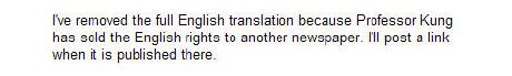 En précisant qu'elle a dû retirer la traduction de l'article en anglais car le bon professeur "a vendu les droits anglais à un autre journal"....