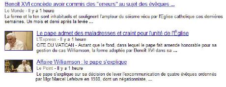 Pour le moment, j'ai surtout lu l'habituelle logorrhée d'insanités, relayées par la grande presse, le pire étant évidemment un prévisible et scandaleux 'le mea culpa de Benoît XVI'. De quoi devrait-il battre sa coulpe?