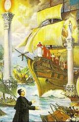 Sur un blogue américain, j'ai lu, il y a peu, le récit d'une conversion d'un évangélique au catholicisme. L'évangélique racontait à son ami catholique un rêve qu'il avait fait. Ce rêve ressemblait fort à la vision prophétique de saint Jean Bosco (*) , mais l'évangélique n'en savait rien, bien entendu. Dans son rêve, ce jeune homme avait vu un grand bateau qui luttait contre la tempête et des ennemis qui lui tiraient dessus de partout. Aux côtés de ce bateau, il y avait des petites embarcations qui luttaient aussi. Au gouvernail, il y avait un homme en blanc qui tomba sous les flèches des ennemis; il fut aussitôt remplacé par un autre homme en blanc qui ressemblait étrangement à Benoît XVI. De chaque côté du gros navire, il y avait un pilier blanc. À un moment, le rêveur raconte qu'on lui dit qu'il n'avait pas à rester sur une petite embarcation, mais qu'il pouvait et devait rejoindre le navire amiral.