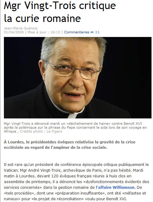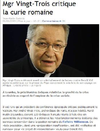 "Nous, évêques de France, aimerions que le pape cesse de nous déranger avec ses initiatives personnelles (levée des excommunications) ou ses déclarations (préservatif) qui nous tombent dessus sans crier gare et nous obligent à sortir de notre inertie pour assurer les fidèles que nous sommes bien aux côtés du Souverain Pontife.