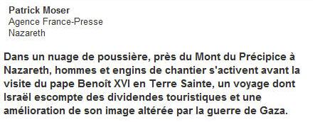 Israël compte sur le pape pour relancer le tourisme. Et à Gaza, la population manque de tout. Extrait d'une interview (audio) du curé de Gaza pour RV (25/4/2009)