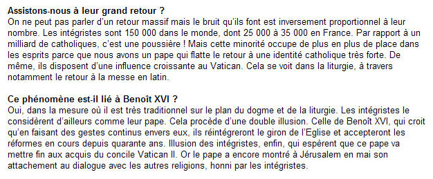 Il est surtout très soucieux d'attiser les braises de la discorde, lorsqu'il affirme que les "intégristes" "honnissent" le dialogue inter-religieux.
