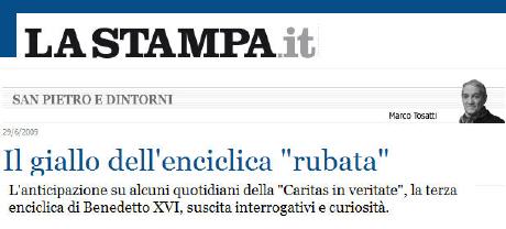 Passons maintenant à la seconde hypothèse. Une hypothèse « institutionnelle » ; c'est-à-dire que quelqu'un dans les Palais Sacrés a jugé bon de commencer à faire monter l'intérêt autour de « Caritas in veritate », en organisant une petite distribution bien guidée vers quelques titres jugés dignes de recevoir cette marginalisation, on ne sait pas sur la base de quel critère. Mais à ce que je crois, derrière le Portail de Bronze, tout le monde, même à des niveaux très élevés, n'était pas au courant de l'initiative. Un détail pour spécialistes.