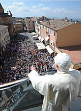Après avoir prononcé la catéchèse depuis la fenêtre donnant sur la petite cour intérieure du palais Apostolique, le Saint-Père traverse le bâtiment pour saluer la foule nombreuse rassemblée sur la Place, à l'extérieur.