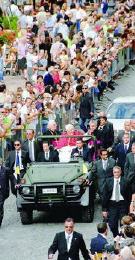 Accueil très chaleureux pour le Saint-Père, arrivé à la cathédrale d'Aoste à bord d'une simple "jeep" et salué avec affection par l'évêque d'Aoste Mgr Giuseppe Anfossi, avant de célébrer les vêpres devant une assemblée de quelque 400 personnes.