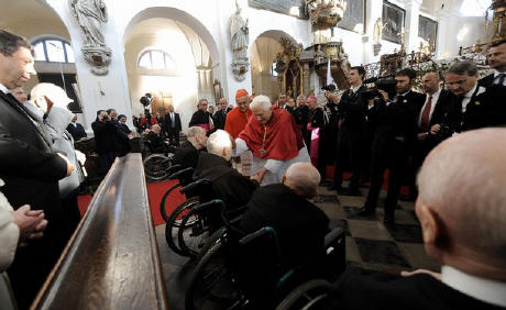 Citant l'Evangile du jour, le passage dans lequel Jésus se demande à quoi sert à l'homme de conquérir le monde s'il perd sa vie, Benoît XVI a affirmé que la vraie valeur de l'existence humaine "ne se calcule pas en biens terrestres et intérêts passagers car ces réalités matérielles ne peuvent étancher la soif de sens et de bonheur de chacun. Le Christ n'a pas hésité à proposer à ses disciples la voie étroite qui conduit à la sainteté". C'est un chemin à suivre avec courage, en suivant l'exemple des saints, "afin que ceux qui se disent chrétiens soient crédibles, en cohérence avec leur profession de foi. Apparaître bons et honnêtes ne suffit pas, il faut l'être... Là est la leçon laissée par Wenceslas, qui eut le courage de placer le Royaume des cieux avant les mirages du pouvoir terrestre".