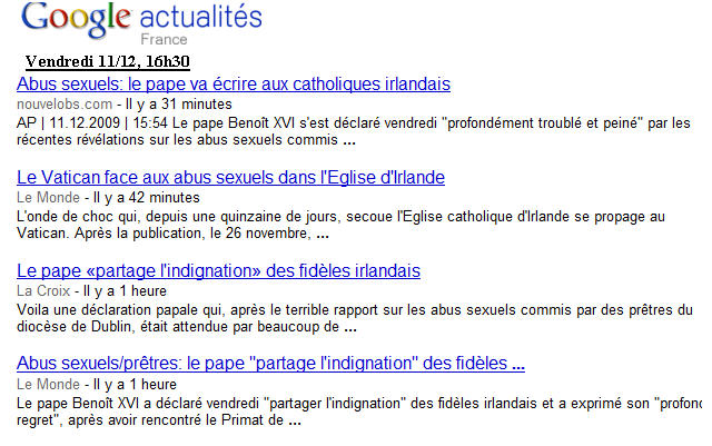 Réflexions de circonstance, et capture d'écran "Google" (11/12/2009)