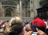 Ayant perdu l'équilibre, il est tombé, mais s'est relevé immédiatement, aidé par les cérémoniaires, et a continué à marcher sereinement vers l'autel, souriant et bénissant (ce dont témoignent parfaitement les images du direct de la RAI, que j'avais enregistrées et que je viens de revoir), comme si de rien n'était.