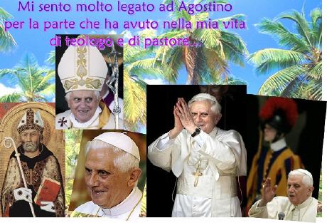 Le saint évêque d'Hippone, et docteur de l'Eglise est un grand inspirateur de Joseph Ratzinger, non seulement dans son travail de chercheur (il lui a consacré sa thèse de doctorat "Peuple et maison de Dieu chez Saint-Augustin"), mais dans sa vie, puisqu'il a déjà dit qu'il le considérait comme un ami: