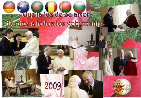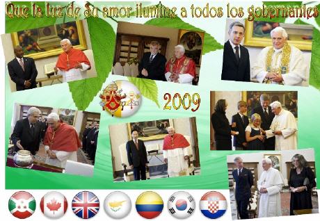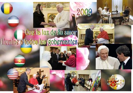 Fantastique travail de Gloria qui, pour rappeler l'intense activité du saint-Père, a réalisé 6 collages commémoratifs de ses multiples rencontres avec les chefs d'état du monde entier. (25/11/2009)