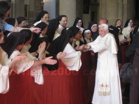 A vous, je confie mes intentions, les intentions de l'évêque de ce diocèse et les besoins de ceux qui vivent dans ce pays. A vous je confie tout particulièrement en cette année sacerdotale les prêtres, les séminaristes et les vocations. Soyez avec votre silence orant leur soutien "à distance" et exercez envers eux votre maternité spirituelle, en offrant à Dieu le sacrifice de votre vie pour leur sanctification et pour le bien des âmes. Je vous remercie pour votre présence et je vous bénis de tout coeur; transmettez également à vos sœurs, qui n'ont pas pu venir, les salutations et la bénédiction du Pape.