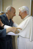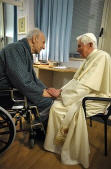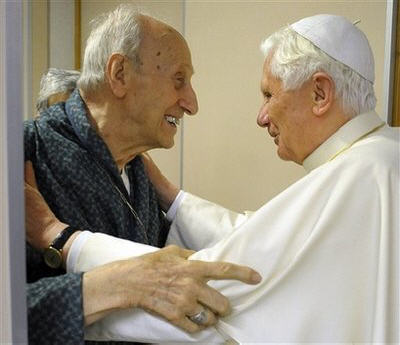 Benoît XVI s'est rendu à l'hôpital romain pendant une demi-heure, pour y rencontrer le cardinal Roger Etchegaray, qui se remet de sa fracture du fémur de la veille de Noël