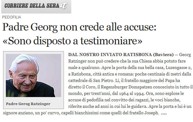Il a été ordonné prêtre en 1951, comme son frère, le Pape, et en près de soixante ans il n'a jamais pensé que quelque chose comme cela - le viol - pourrait devenir l'objet d'un débat public. Un motif pour accuser l'Eglise, surtout: il peut y avoir eu de mauvais sujets partout, mais pourquoi la presse implique-t-elle l'Église?