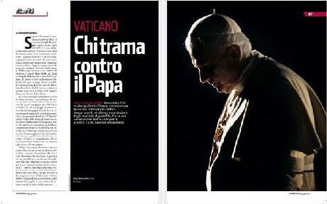 Cette semaine, le journal publie un dossier intitulé "Chi trama contro il Papa?" (qui intrigue contre le Pape?).
