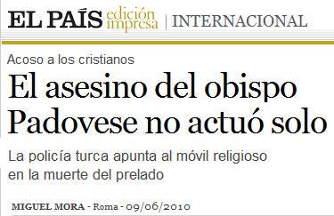Le Vatican continue à avoir sa version assumée dès le début pour ne pas compromettre le voyage du Pape à Chypre (ndt c’était peut-être aussi l’un des buts de l’assassinat, alors que « la flottille de la paix » avait appareillé de la zone nord de Chypre occupée par les Turcs et qu’une rencontre entre le président grec chypriote et le responsable turc de la zone occupée qui devait avoir lieu venait d’être annulée). Le fait capital c’est que Padovese a annulé les billets d’avions (le sien et celui d’Altun) seulement quelques heures avant l’embarquement à destination de Chypre où le Pape l’attendait pour présenter le document préparatoire au Synode du Proche Orient.