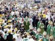 Selon les autorités, relayées par l'agence APCOM , (y a-t-il là bas aussi des "querelles de chiffres"? Je ne sais pas, mais au vu des images du direct de KTO, et de la RAI, la place où était célébrée la messe était noire de monde...), 250 000 personnes assistaient ce matin, sous un soleil radieux, et dans un cadre magnifique, à la messe du Pape.