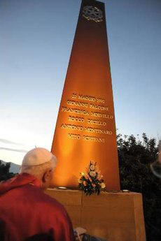 En chemin vers l'aéroport de Palerme, avant de retourner à Rome, le Saint-Père s'est arrêté pour déposer une gerbe de fleurs devant le monument en mémoire de Giovanni Falcone, le juge assassiné par la mafia en 1992.