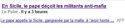 Voilà ce qu'on peut lire dans la presse française, dimanche 3 octobre à 18h30, au soir de la visite du saint-Père à Palerme: