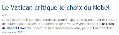 L'Eglise et le prix Nobel de médecine