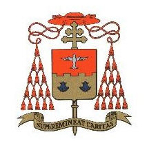 Ce blason, brodé entièrement à la main, a été conçu dans les Ateliers d'ornements liturgiques Ferrarais Regia Ars; il re-propose le blason, avec les emblèmes du Pape et le pallium orné de croix rouges. La partie extérieure est au contraire inspirée par les armoiries du pape Barberini (Urbain VIII, pape de 1623 à 1644) que l'on voit sur les piliers du Baldaquin du Bernin dans la basilique Saint-Pierre.