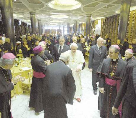 Auparavant, Benoît XVI a rappelé comment la tradition du déjeuner en conclusion du Synode avait été inaugurée par Jean-Paul II - dont on a célébré hier le trente-deuxième anniversaire du début du ministère pétrinien - et a remercié le président et le Secrétariat du Synode pour le Moyen-Orient, rappelant les difficultés qu'il avait connues personnellement quand, comme cardinal, il avait été rapporteur du synode de 1980 sur la famille.