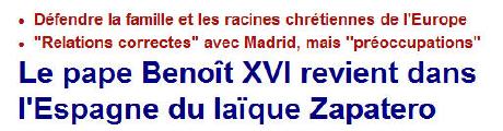 Des médias espagnols et étrangers ont fait grand cas de l'opposition de mouvements laïques à la visite du pape. (voir Le Flop des manifs anti-papales)