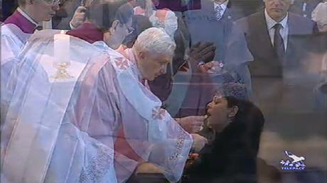 Dans l'attente de la traduction de l'homélie du Saint-Père, inspirée, splendide, en grande partie prononcée a braccio, sur le thème des dictatures et des faux prophètes, qui, au lieu de changer le monde, n'ont amené que destruction, voici quelques captures d'écran de Telepace.