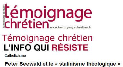 Peter Seewald n'a pas apprécié les attaques contre le Pape et l'Eglise charriées par les théologiens, et il le fait savoir sans prendre de gants, suscitant les critiques ironiques de Jérôme Anciberro, de TC (celui-là même qui avait traduit l'appel en français: La fronde des théologiens allemands ). Ce dernier va jusqu'à parler de "stalinisme idéologique!