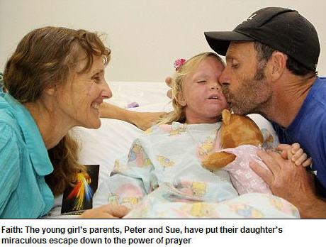 Les parents de la petite fille, Peter et Sue, attribuent le fait que leur fille soit miraculeusement indemne à la force de la prière