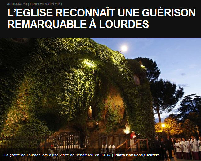 Le pompon, si j'ose dire, revient au site Internet de Paris Match, qui illustre son article d'une photo ainsi légendée: "La grotte de Lourdes lors d'une visite de Benoît XVI en 2010" (sic!!)