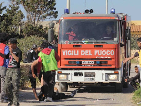Un incendie a été allumé par les mineurs hébergés dans Casa della Fraternità, de la Paroisse de Lampedusa. Il a été éteint par les pompiers. Les jeunes ont mis l'édifice à sac, défonçant les portes et les vitres. La protestation s'est poursuivie dans la rue. Les forces de l'ordre, en tenue anti-émeute, sont intervenues.