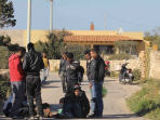 Des associations de défense des immigrés venues de toute l'italie (ligue anti-raciste, PDCI - parti communiste, PRC - refondation communiste, etc...) ont organisé un sit-in dans un village voisin pour assurer de leur solidarités, non pas les habitants, mais les nouveaux arrivés...