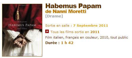 J'avais entendu parler du film il a un an et demi (ici) , car son réalisateur, Nanni Moretti, une institution en Italie, figurait parmi les artistes invités par le Pape en Novembre 2009, à la Chapelle Sixtine. Preuve que le saint-Père (ou au moins Mgr Ravasi, l'organisateur de l'évènement) a de l'humour.