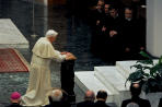 En effet, notre passage commence par le mot "donc": "Donc, je vous invite ... ... "(v. 1). Le comportement des chrétiens est la conséquence du don, la réalisation de ce qui nous est donné chaque jour. Et pourtant, si c'est simplement la réalisation du don qui nous est donné, il ne s'agit pas d'un effet automatique, car avec Dieu, nous sommes toujours dans la réalité de la liberté et donc - puisque la réponse, et même la réalisation du don est liberté - l'Apôtre se doit de le rappeler, il ne peut le tenir pour acquis. Le baptême, nous le savons, ne produit pas automatiquement une vie cohérente: ceci est le fruit de la volonté et de l'engagement persévérant à collaborer au don, à la grâce reçue. Et cet engagement coûte, il y a un prix personnel à payer. C'est peut-être pour cette raison que saint Paul se réfère ici à son état actuel: "Ainsi, moi, prisonnier à cause du Seigneur, vous exhorte ... "( ibid. ). Suivre le Christ signifie partager sa Passion, sa Croix, le suivre jusqu'au bout, et cette participation au destin du Maître lie profondément à lui et renforce l'autorité de l'exhortation de l'Apôtre.