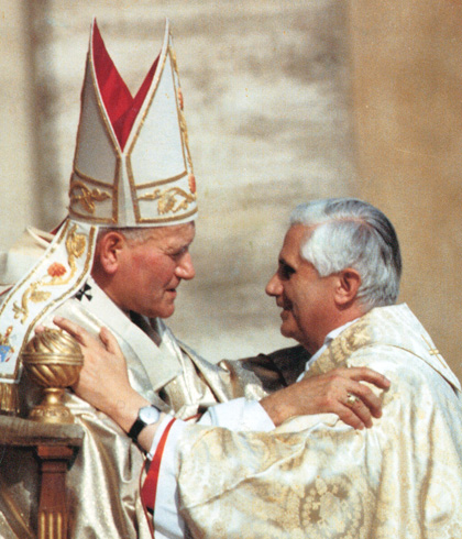 Ce qui ne fait aucun doute, c'est que Jean-Paul II s'est laissé inspirer par mon frère dans de nombreux domaines, et qu'il avait aussi noué avec lui un contact intense. Il accordait une grande valeur à son jugement. Dans cette mesure, il y a déjà une certaine continuité, les deux pontificats ne se distinguent pas sur l'essentiel.