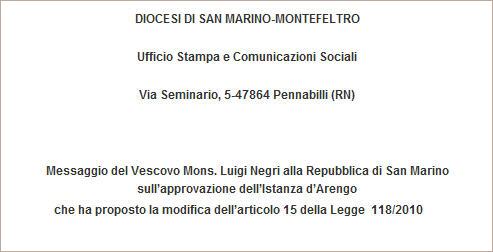 Mgr Negri a immédiatement pris sa plume pour adresser un message solennel à la République de Saint-Marin.