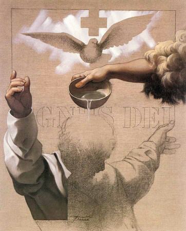 Cependant, on doit conclure que ce n'est plus le cas. Le meilleur qu'on puisse espérer chez la plupart des artistes du XXe siècle est une sorte de mysticisme cosmique. De nombreux intellectuels traitant de cette question ont oublié que l'artiste chrétien peut être l'instrument de la grâce divine. Fra Angelico est réputé avoir déclaré que «Pour peindre le Christ, il faut vivre le Christ», ou comme l'artiste américain James Langley le voit: