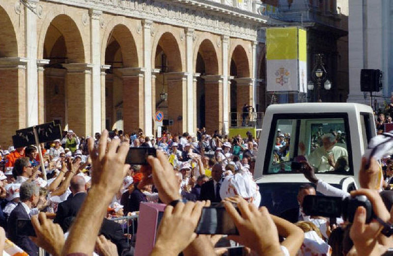 Ayant quitté le Vatican à 9h par hélicoptère, le Saint-Père est arrivé une heure plus tard à Lorette, sur l'Adriatique, où après l'accueil des autorités civiles et religieuses régionales il a gagné le sanctuaire. Sur la Place de la Vierge, il a salué la communauté des capucins attachée à la basilique, puis est entré dans le sanctuaire pour prier devant le Saint Sacrement et devant l'image de la Vierge conservée dans la Santa Casa. A 10h30, il est revenu sur la place pour célébrer la messe devant la foule.