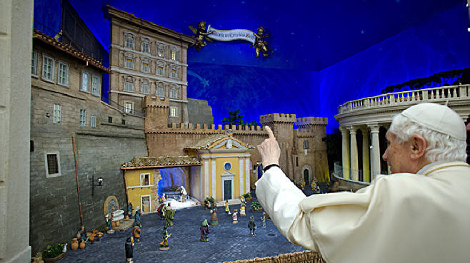 Celle installée dans ses appartements privés par les services techniques du Gouvernatorat de la Cité du vatican, et le personnel des Musées. (22/12/2012)