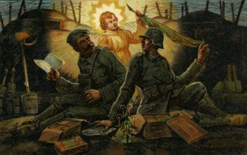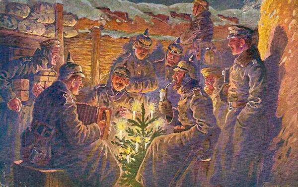 Au mois de Décembre 1914, dans les tranchées des Flandres, on se bat furieusement entre anglais et allemands. Les troupes adverses, immobilisés dans les tranchées, sont à moins de 60 mètres. Les soldats sont plongés dans la boue, avec de l'eau dûe à la pluie battante, qui leur monte jusqu'aux genoux, entourés par les corps des camarades tués, s'attendant à tout moment qu'un obusier d'artillerie tombe sur eux. La veille de Noël, la pluie avait cessé et dans le silence de la nuit éclairée par la blanche clarté de la lune, quelque part sur le front, s'éleva, inattendu, le chant d'un soldat allemand. Une autre voix suivit, puis un autre, jusqu'à ce que, des lignes allemandes, on entende une mélodie résonner dans le paysage glacé de la Flandre. C'étaient les notes de «Stille Nacht, heilige Nacht». Le chant de Noël se répandit comme une vague. Tout aussi inattendue, des tranchées britanniques répondirent les notes de «The First Nowell the Angels did say», le vieux cantique de Noël anglais.