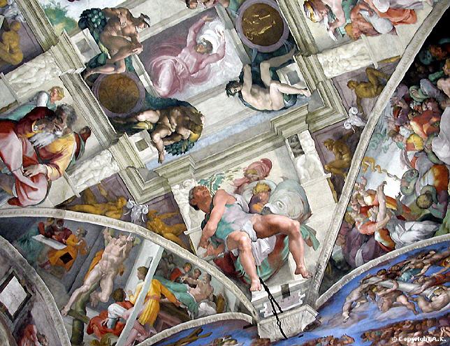 En ce 31 Octobre 1512, quand Jules II inaugura avec la liturgie des vêpres la voûte de Michel-Ange, terminée après un effort immense de quatre ans (1508-1512), le Pape ne pouvait pas imaginer que de ces plus de mille mètres carrés de fresques allait déferler sur l'histoire un violent torrent de montagne porteur de félicité, mais aussi de dévastation (?), comme l'écrivait Woelfflin en 1899 avec une belle métaphore (Heinrich Wölfflin, né à Winterthour le 24 juin 18641 et mort à Zurich le 19 juillet 1945, est un historien de l'art, écrivain et professeur suisse).