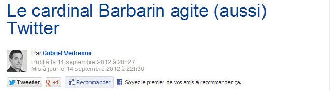 Un documentaliste-maison a plongé les mains dans la poubelle - pardon, les tweets - avec le mot-clé "Barbarin". Façon pour la station de se dédouaner à bon compte, en prétextant l'information, et en se défaussant des insultes sur les internautes (http://www.europe1.fr/France/Le-cardinal-Barbarin-agite-aussi-Twitter-1239257/).
