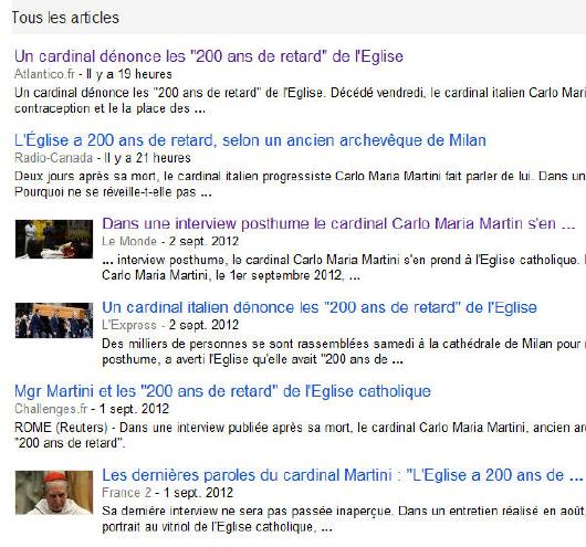 Voici par ailleurs un extrait d'une dépêche de l'AFP qui résume assez bien le ton général de la presse (et rend un son curieux: comment imaginer qu'il s'agit de l'oraison funébre d'un cardinal de l'Eglise Catholique Romaine, si décriée par ailleurs?), en plus, évidemment, de la providentielle interviewe posthume: