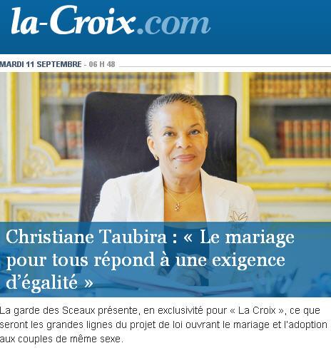 C'est parti! Et c'est la Croix qui l'annonce!!! (11/9/2012, mise à jour: Le "mariage pour tous", un "mariage pour personne"? interroge le site Le soupirail et les vitraux)