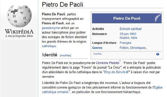 A la suite de la publication de mon article Pietro de Paoli serait... Christine Pedotti , mon amie Anne m'a transmis la critique (extatique! mais on n'est jamais si bien servi que par soi-même) d'un des livres signés Pietro de Paoli, parue sur le site du Comité de la jupe. Sans commentaire, dit-elle.