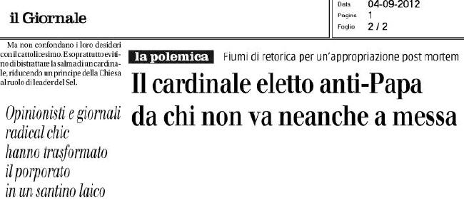 "Fleuves de rhétorique pour une appropriation post-mortem. Martini élu anti-Pape par ceux qui ne vont pas à la messe... Opinionistes et journaux de la gauche caviar ont transformé le cardinal en un petit saint laïc".