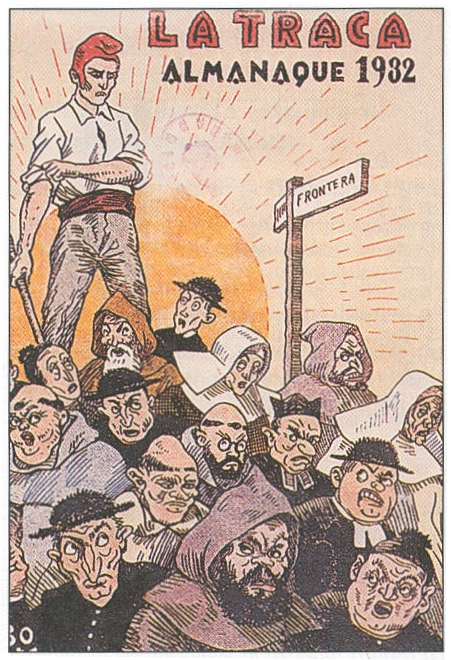 Image ci-contre: Ilustration de l'anticléricalisme ordinaire en Espagne sous la République et bien avant le soulèvement franquiste - Image d'un journal satirique fondé à la fin du XIX à Valence en Espagne mais qui va devenir de plus en plus antimonarchique puis anticlérical.